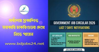 বেসরকারি চাকরির খবর ২০২৬ । গত ৭ দিনের প্রকাশিত কোম্পানি জব সার্কুলার এর তালিকা চাই
