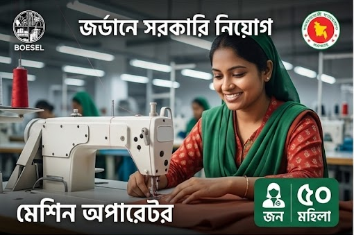 বাংলাদেশ ওভারসিজ এমপ্লয়মেন্ট অ্যান্ড সার্ভিসেস লিমিটেড (বোয়েসেল) জর্ডানের স্বনামধন্য গার্মেন্টস কোম্পানি ‘ফ্রেন্ডস অ্যাপারেল এলএলসি’-এর অধীনে দক্ষ নারী মেশিন অপারেটর নিয়োগের বিজ্ঞপ্তি প্রকাশ করেছে। সম্পূর্ণ সরকারি প্রক্রিয়ায় এই নিয়োগ কার্যক্রম সম্পন্ন হবে।